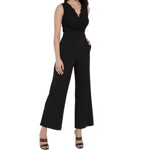 Express Black Lace Faux Wrap Bodice Wide Leg Jumpsuit NWT