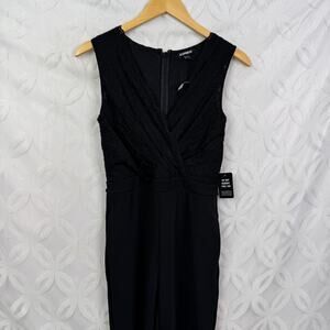 Express Black Lace Faux Wrap Bodice Wide Leg Jumpsuit Size S NWT