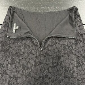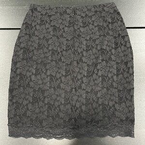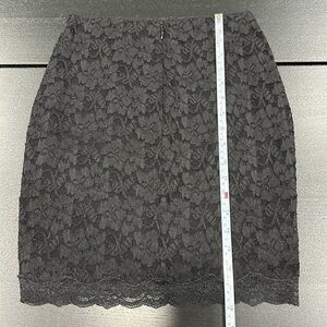Express Black Lace Lined Mini Skirt in size 00. Measurements are shown in photos. No visible flaws or signs of use. Good amount of stretch, can be sized down to wear tight and sexy or worn at hips for a more traditional or professional look. Very comfortable, breathable, and soft.