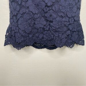 Chic black lace pencil skirt with a peplum hem. Features elegant lace detailing. Perfect for stylish occasions.