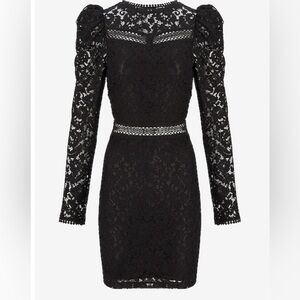 Express Black Lace Puff Sleeve Side Cutout Sheath Dress- NWT
