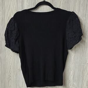 Express Black Lace Puff Sleeve V Neck Sweater Top Womens Size Medium