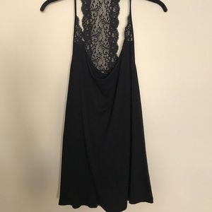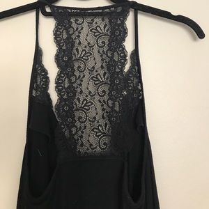 Gorgeous lace detailing in back. Loose fitting with a slight cowl neck.