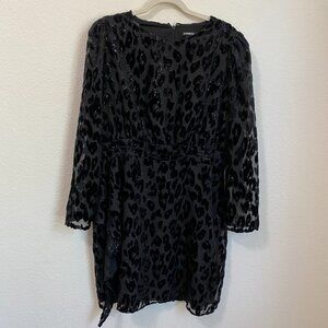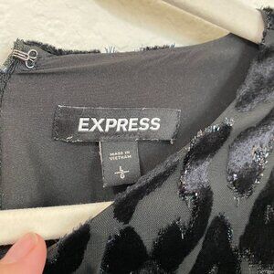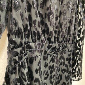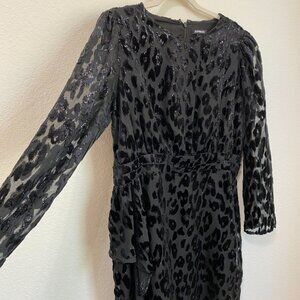 Express Black Leopard Velvet Burnout Ruffle Front Dress
