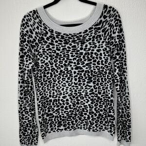 Express Black & Light Gray Leopard Print Boat neck Long Sleeve Thin Sweater M