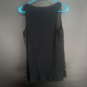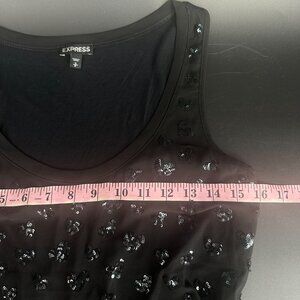 Express Black Liner Sheer Slinky Overlay Heart Sequin Top Tank Size Small