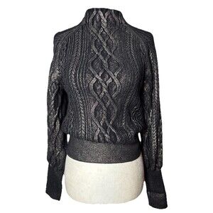 Express Black Metallic Cable Knit Sweater | Small Sparkle Shimmer Party Holiday