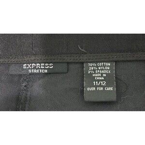 The Express Stretch Black Dress Pants feature a wide leg design, suitable for casual, formal, workwear, or business settings. Made from a blend of nylon, spandex, and cotton with a twill fabric type, these size 11/12 pants have a flat front and a regular fit. The pants come in a solid black color and have a zipper closure. The brand is Express, and they offer a designer, classic, city, and preppy style, making them versatile for various occasions throughout the seasons.