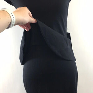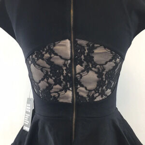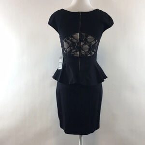 Express Black Peplum Mini Dress Womens 2 Cap Sleeve . Zip back closure. Keyhole mesh back. 65% Rayon, 30% Nylon, 5% Spandex. New without tags.