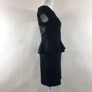 Express Black Peplum Mini Dress Womens 2 Cap Sleeve Lace Open Back Career Date