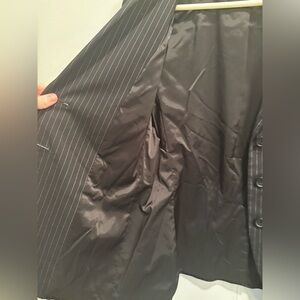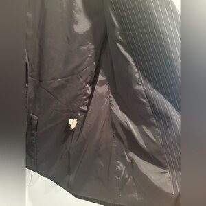Elegant black jacket with subtle pinstripes. Ideal for business or formal wear.