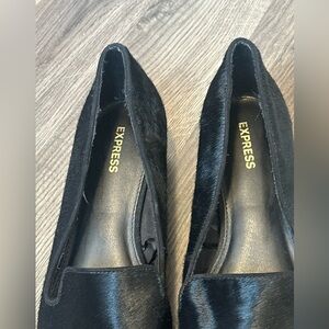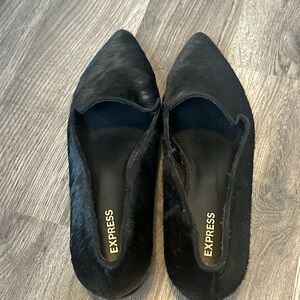 These sleek black flats from Express feature a pointed-toe design and a soft suede-like finish, making them perfect for both casual and business settings. With their minimalist style and versatile appeal, they effortlessly combine elegance and comfort.