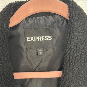 Express Black Quilted Vest with Textured Collar
