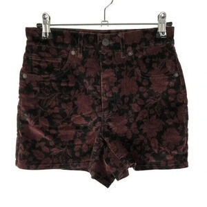 Express Black & Red Floral Velvet Midi High Rise Shorts 00
