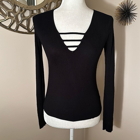 Express Black Ribbed Knit Top