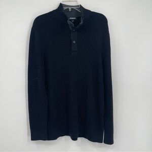 Express Black Ribbed Long Sleeve Collared 1/4 Snap Pullover Sweater men Size XL