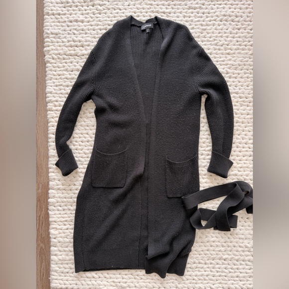 Express Black Ribbed Open Cardigan