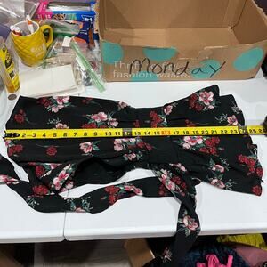 Express Black Rose Red Floral Peplum Tie Back Dark Floral Top Goth Whimsy Small