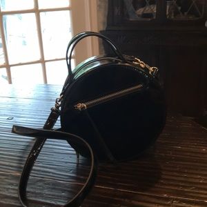 Express Round Black Handbag. Very pretty and unique style. Shoulder, Cross body, or handbag. The strap is detachable.