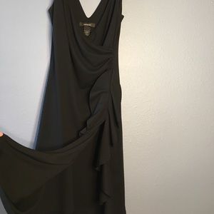 This dress was a staple for me. It was great for weddings and as just your typical little black cocktail dress. It was as a little longer that some LBDs but the slip and ruffle added some pizzazz. The cross neck and ruched side make it particularly flattering.