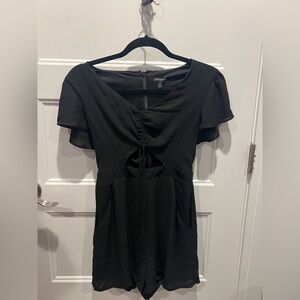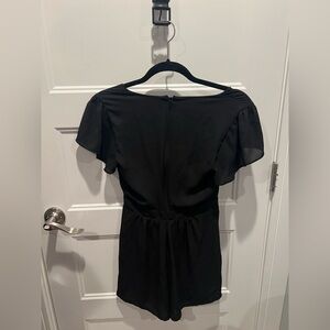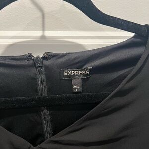 This elegant black sheath dress by Express is perfect for a cocktail night out. It features a flattering ruched design with a scoop neckline and short flutter sleeves, offering a sophisticated and stylish look. The midi length adds a touch of class, making it an ideal choice for any formal occasion.