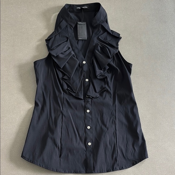 Black blouse from Express with a ruffled front and buttons. Side zipper for a tailored fit. Never been worn.