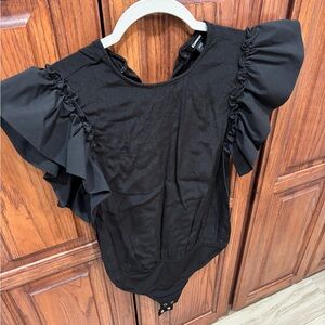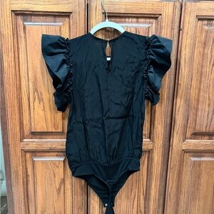 Elegant black bodysuit with ruffled sleeves from Express. Perfect for a chic look- excellent condition. Smoke-free home.