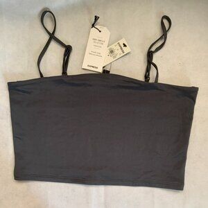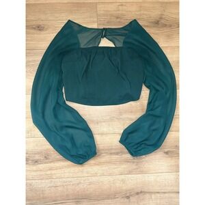 Express Black Satin Balloon Sleeve Crop Top Blouse Surplice Neck Smocked