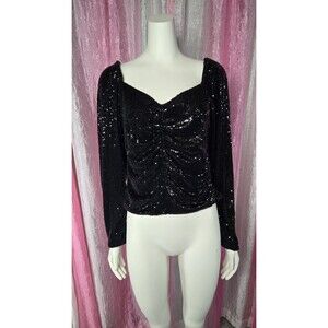 Express Black Sequin Rouched Stretch Evening Blouse Size Large