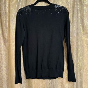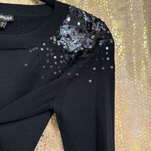 Express Black Sequin Shoulder Long Sleeve Sweater Top Medium