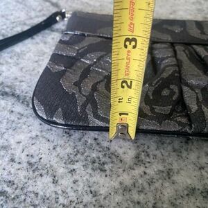 Express Black & Silver Abstract Floral Clutch Zip Pouch Purse Wristlet