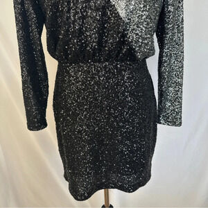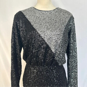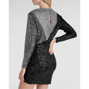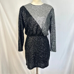 Express Black Silver Sequin Long Sleeve Colorblock Mini Cocktail Party Dress Womens Size Medium. Worn once. In excellent preowned condition.