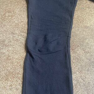 Black skinny leg low-rise stretch pants. Front pockets are fake. Pre-owned. Good condition.