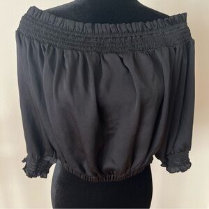 Flowy black boho peasant style off-shoulder top perfect for any occasion. Excellent condition!