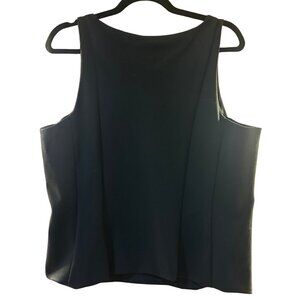 Express' square neck tank top in black. Hits at the waist and has panels on front and back for a fitted look.