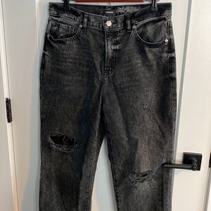 Holes holey acid wash ripped knees high waist straight leg classic vintage look wash 80s 90s mom y2k slouch baggy