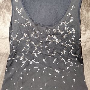Worn a few times size small black tank top with rhinestones material is listed in pictures.