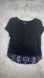 Stylish black tee featuring a vibrant patterned hem. Short sleeves. Ideal for casual outings.