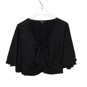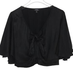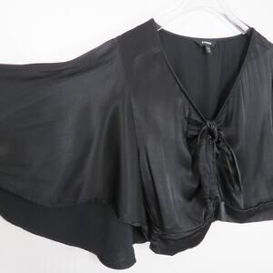 Express Black Tie Front Crop Top Satin Butterfly Top Cute Medium