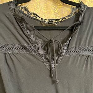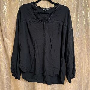 Express Black Tunic Peasant Style Long Sleeve Blouse Large