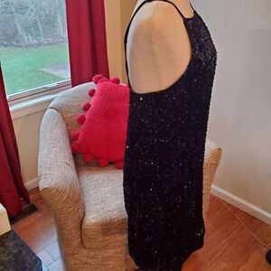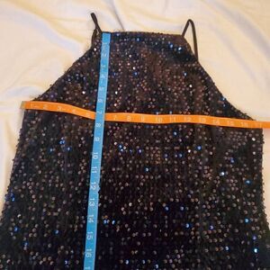 Express. Black, Velvet, Sequin, Open back, Adjustable Straps, Mini Dress. Size Large.