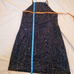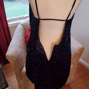 Express. Black, Velvet, Sequin, Open Back, Mini Dress. Size Large