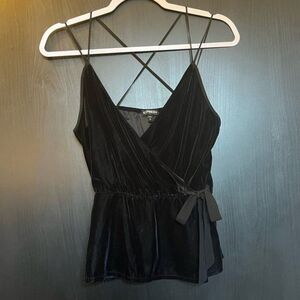 Express Black Velvet Strappy Faux Wrap Cami Tank Top Size Small