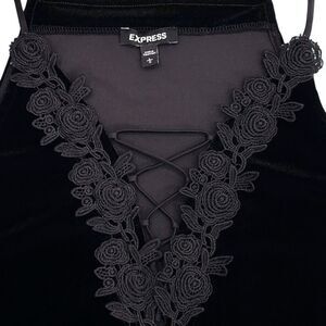 Express Black Velvet Stretchy Lace Up Bodysuit