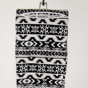 Express black and white stretch midi pencil skirt in Aztec pattern.