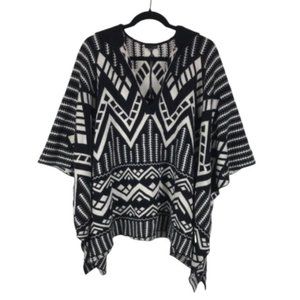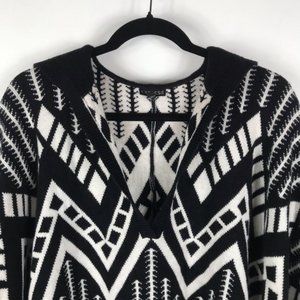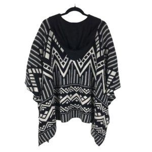 Express black & white Aztec Tribal print hooded knit poncho. No flaws.