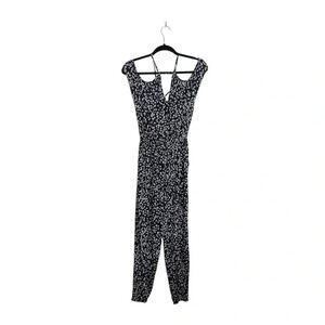 Express Black & White Ditsy Floral Print Cutout Cropped Jumpsuit Xsmall Women’s