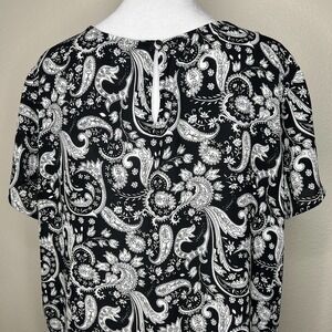 Express Black & White Floral Paisley Short Sleeve Lightweight Keyhole Top Sz L