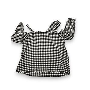 Express Black & White Gingham One Shoulder Ruffle Top Size M