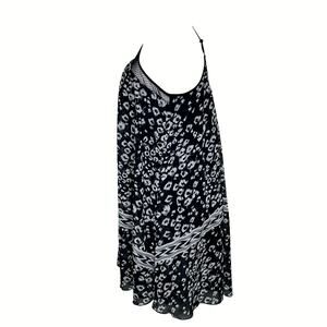 Express Black White Leopard Print V-Neck Sleeveless Lined Dress. 100% Polyester. Adjustable straps, v-neck. Lightweight, flowy. Size Medium. Bust measures 17" armpit seam to armpit seam. Length will vary depending on strap adjustment.